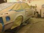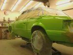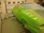 fenders, front bumper, declid, drivers door, door jams and rockers are pretty much ready for paint....just need to finish sanding the trunk jam, take both quarters to bare metal and ill spray the rest of the shell and push it into the other garage so i can spray my other parts....alotta work...i deffenitly wont be buying another fox after this...id rather buy a NEWER mustang! will post more pics later tonight.